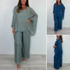 Podnieś swój swobodny styl - płynnie przejście z załatwiń dziennych do wieczornego relaksu. Luźne top i szerokie nogi spodnie tworzą elegancki, złożony wygląd bez poświęcania komfortu.