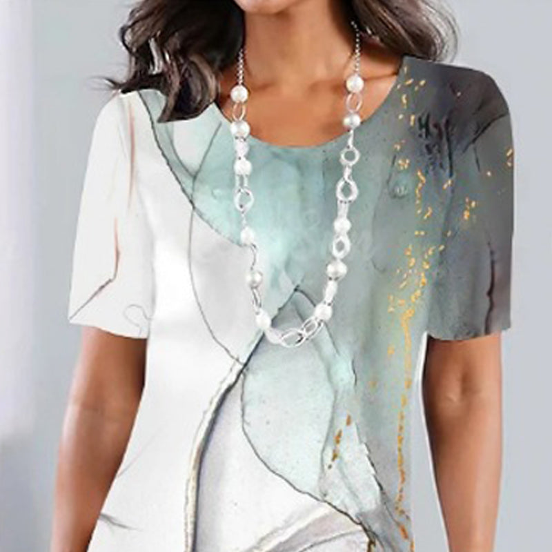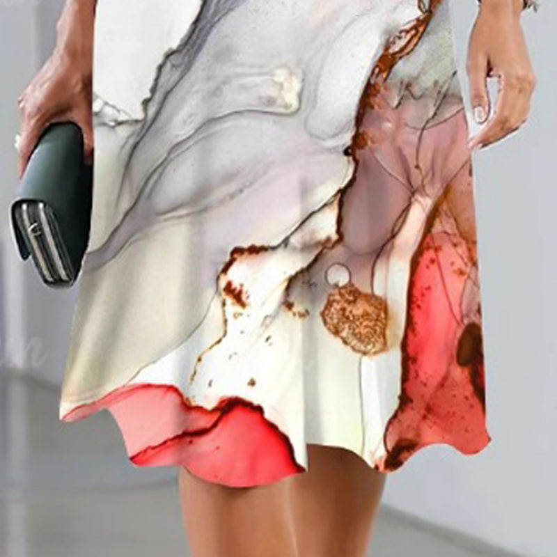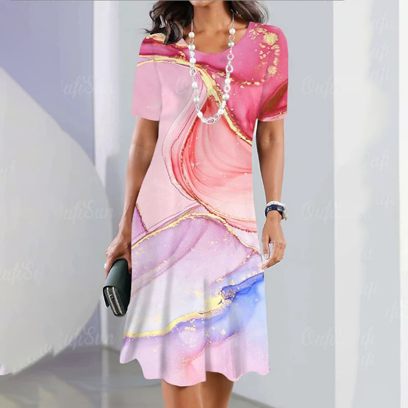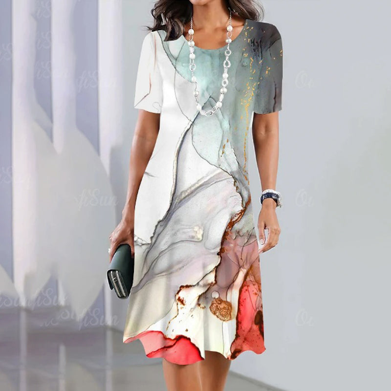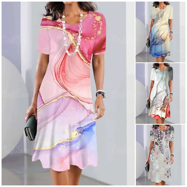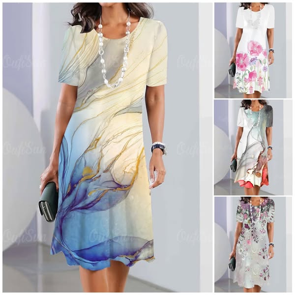 🌸Luźna sukienka z nadrukiem, z krótkim rękawem i okrągłym dekoltem