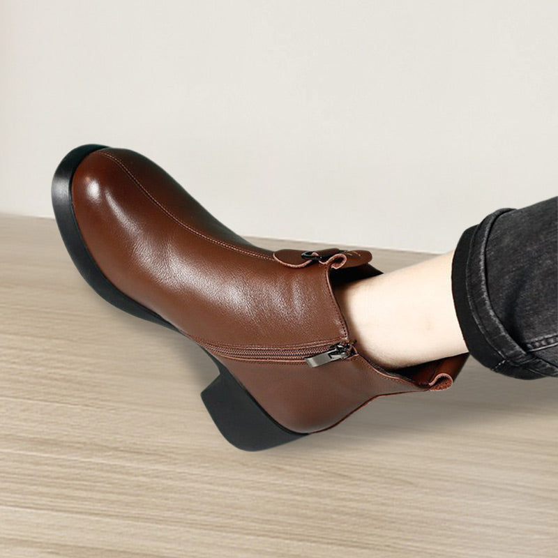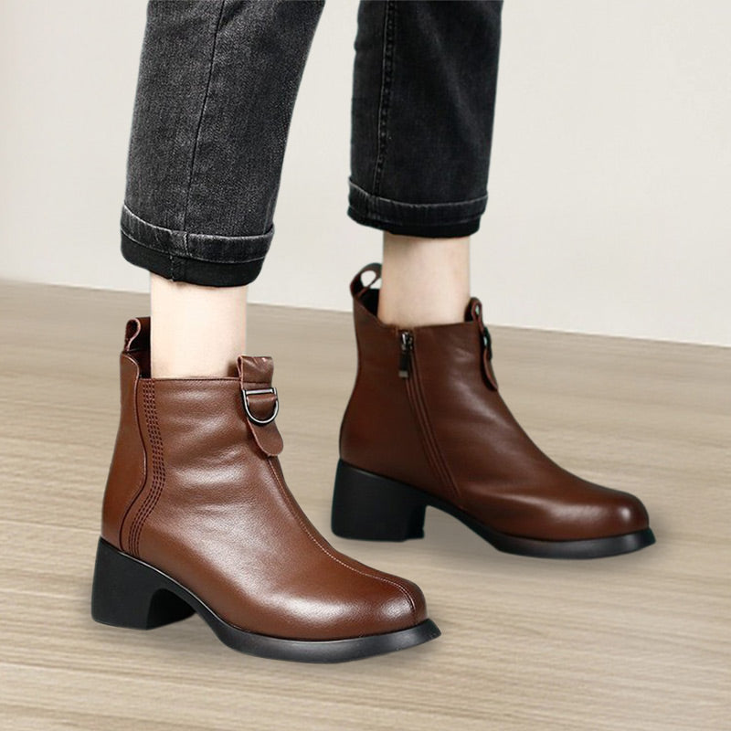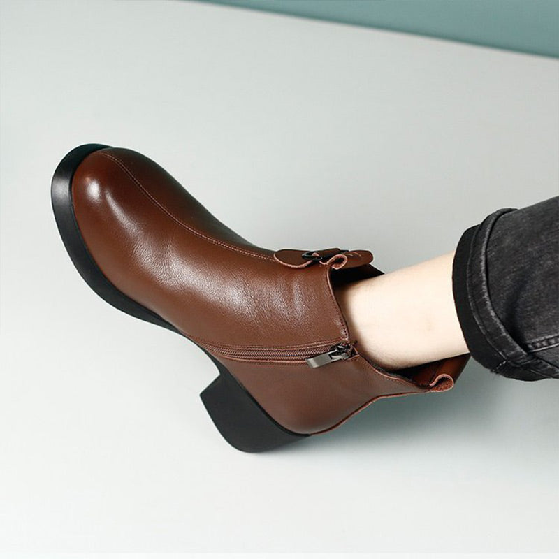 KLASYCZNY DESIGN W STYLIE RETRO: Ötvözd a vintage stílust ezekkel a retro, kerek orrú bokacsizmákkal. Az időtálló dizájn minden ruhához elegáns hangulatot kölcsönöz, így tökéletesek mindennapi kirándulásokhoz és elegánsabb eseményekhez egyaránt.