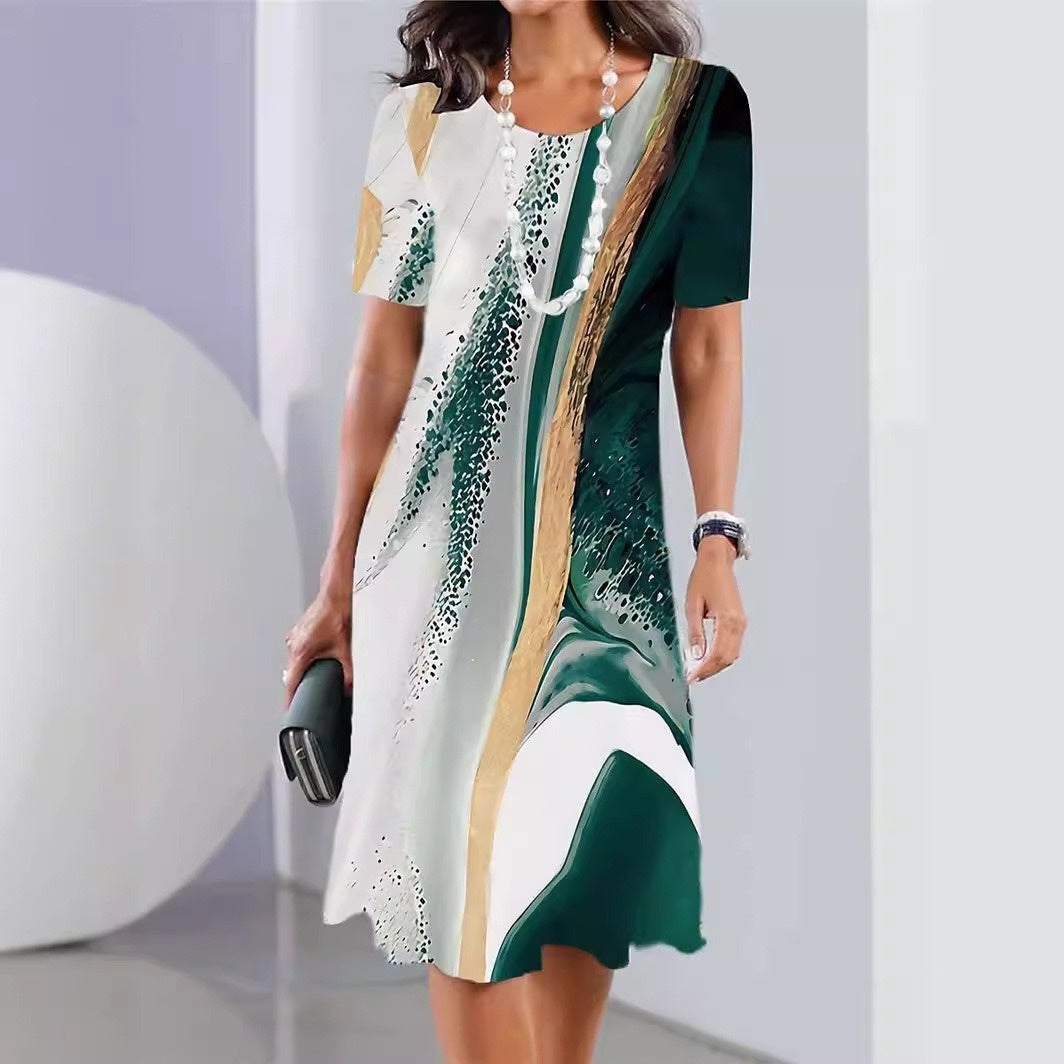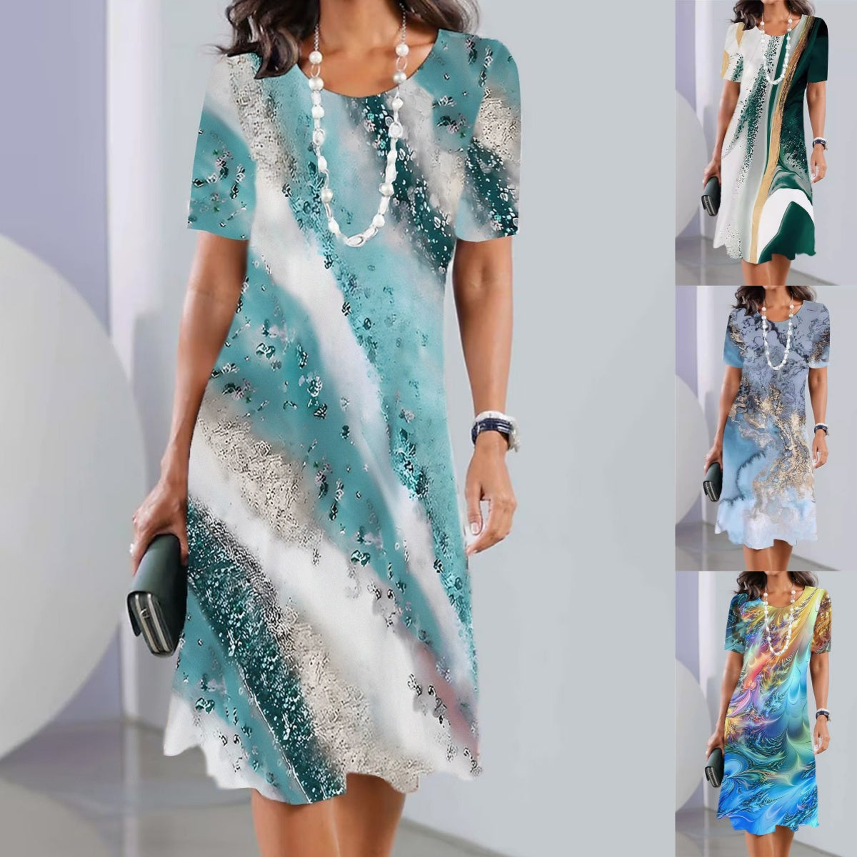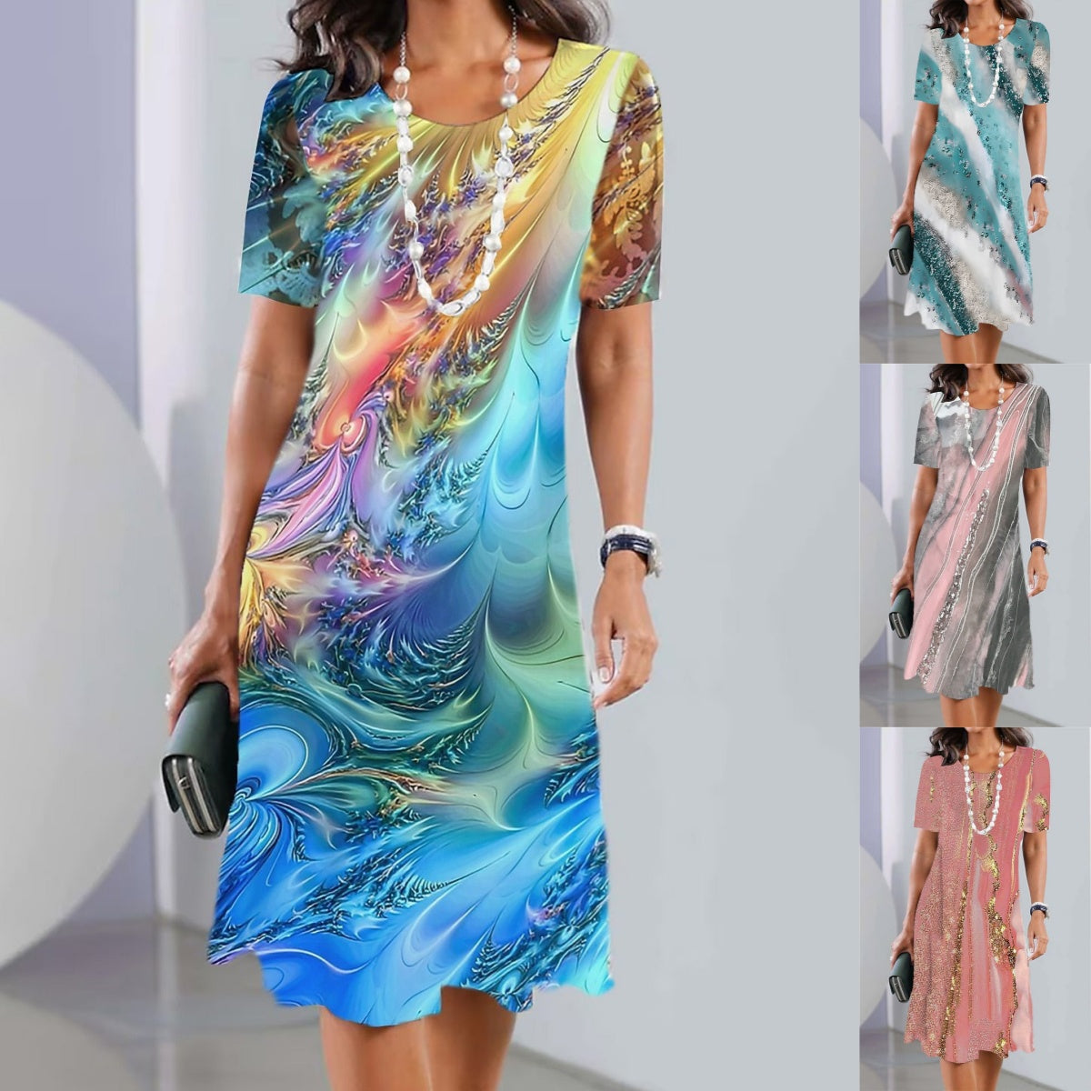 🔥👗Damska sukienka z nadrukiem i okrągłym dekoltem