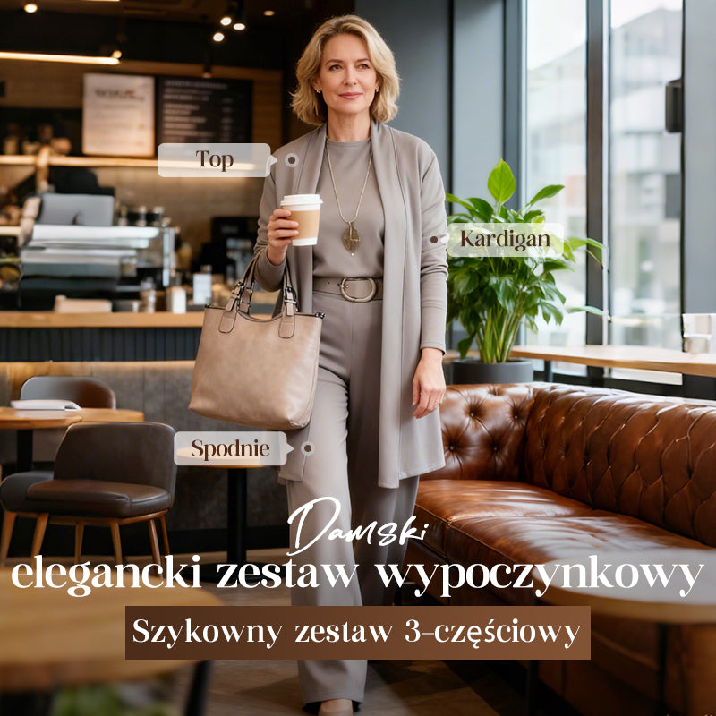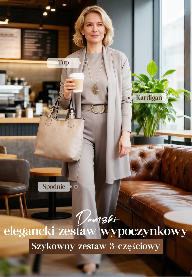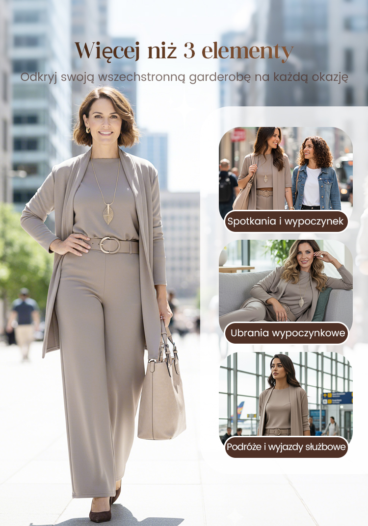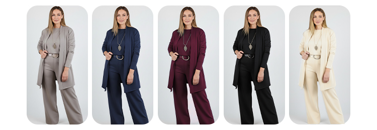 💞Elegancki trzyczęściowy zestaw składający się z długiego kardiganu, bluzki i spodni.