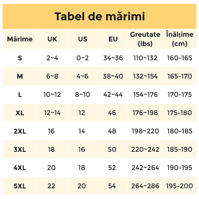 Prosimy o zapoznanie się z tabelą rozmiarów w celu dokonania właściwego wyboru.