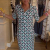 PRZYCIĄGAJĄCY WZROK GEOMETRYCZNY NADRUK Z PRECYZYJNYM WYRÓWNANIEM - Ta sukienka ma żywe geometryczne wzory, które płynnie przechodzą przez szwy. Nasza zaawansowana technologia druku zapewnia idealne dopasowanie wzoru na każdym szwie, zachowując ostry kontrast i bogate kolory nawet po wielu praniach. Wysokiej jakości atramenty są odporne na blaknięcie, pękanie i łuszczenie, dzięki czemu wzór pozostaje świeży i efektowny przez długi czas.