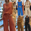 🧡Lniany letni dwuczęściowy komplet bez rękawów🌴