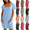 👗Casualowa damska sukienka z krótkim rękawem z kieszeniami i kwadratowym dekoltem