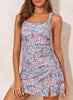 Dwuczęściowy zestaw tankini w stylu vintage:: Skirtini Tankini, Top Tankini z dołem od bikini, Marszczony Top do pływania, Zestaw Tankini z kwadratowym dekoltem i rozcięciem z boku, Strój kąpielowy z odkrytymi plecami, Strój kąpielowy typu push-up z wyjmowanym miękkim wypełnieniem zapewnia doskonałe wsparcie i podkreśla kształty