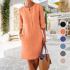 Letnie bawełniane lniane sukienki damskie z długim rękawem i okrągłym dekoltem